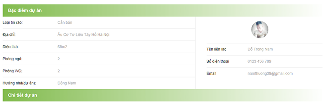 Trang chi tiết dự án hiển thị đầy đủ các thông tin cần thiết như hướng nhà, diện tích, giá cả, tiện ích xung quanh và các đặc điểm nổi bật của dự án. Đặc biệt, mỗi dự án đều kèm theo bản đồ chỉ dẫn, giúp khách hàng dễ dàng xác định vị trí và đánh giá tính thuận tiện của địa điểm.